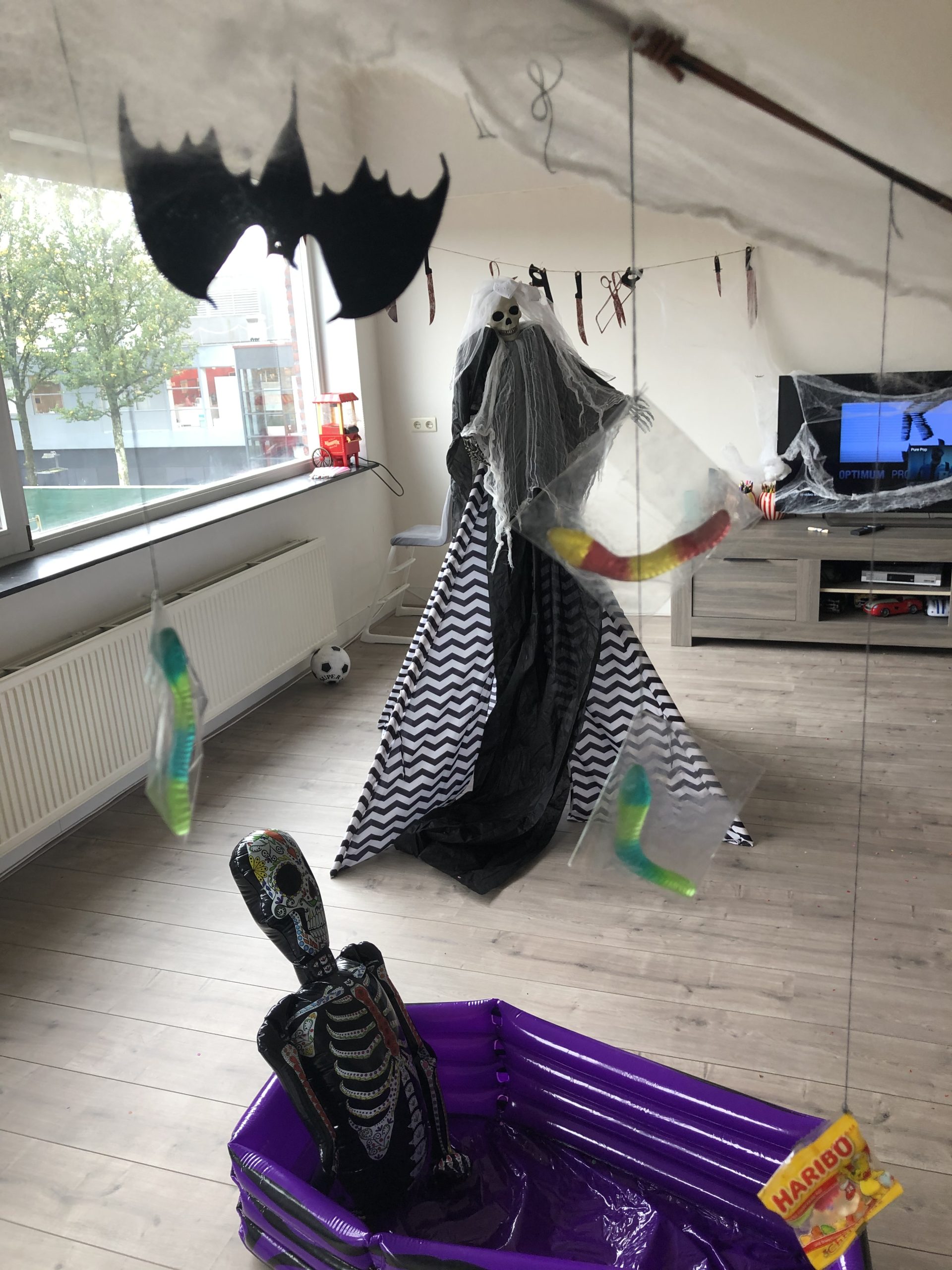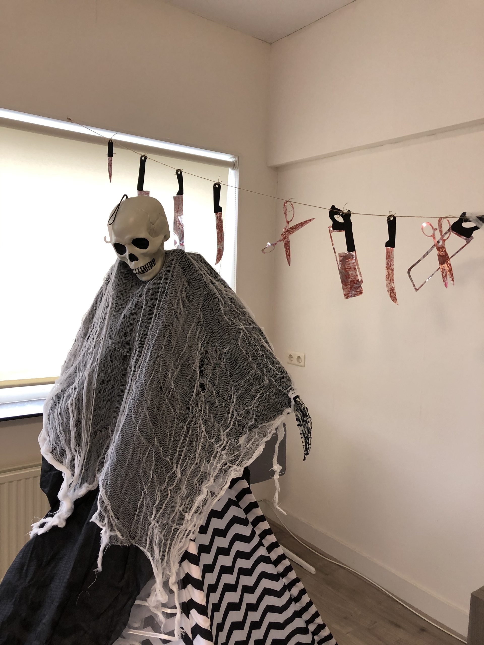 人間大のドクロを吊るして