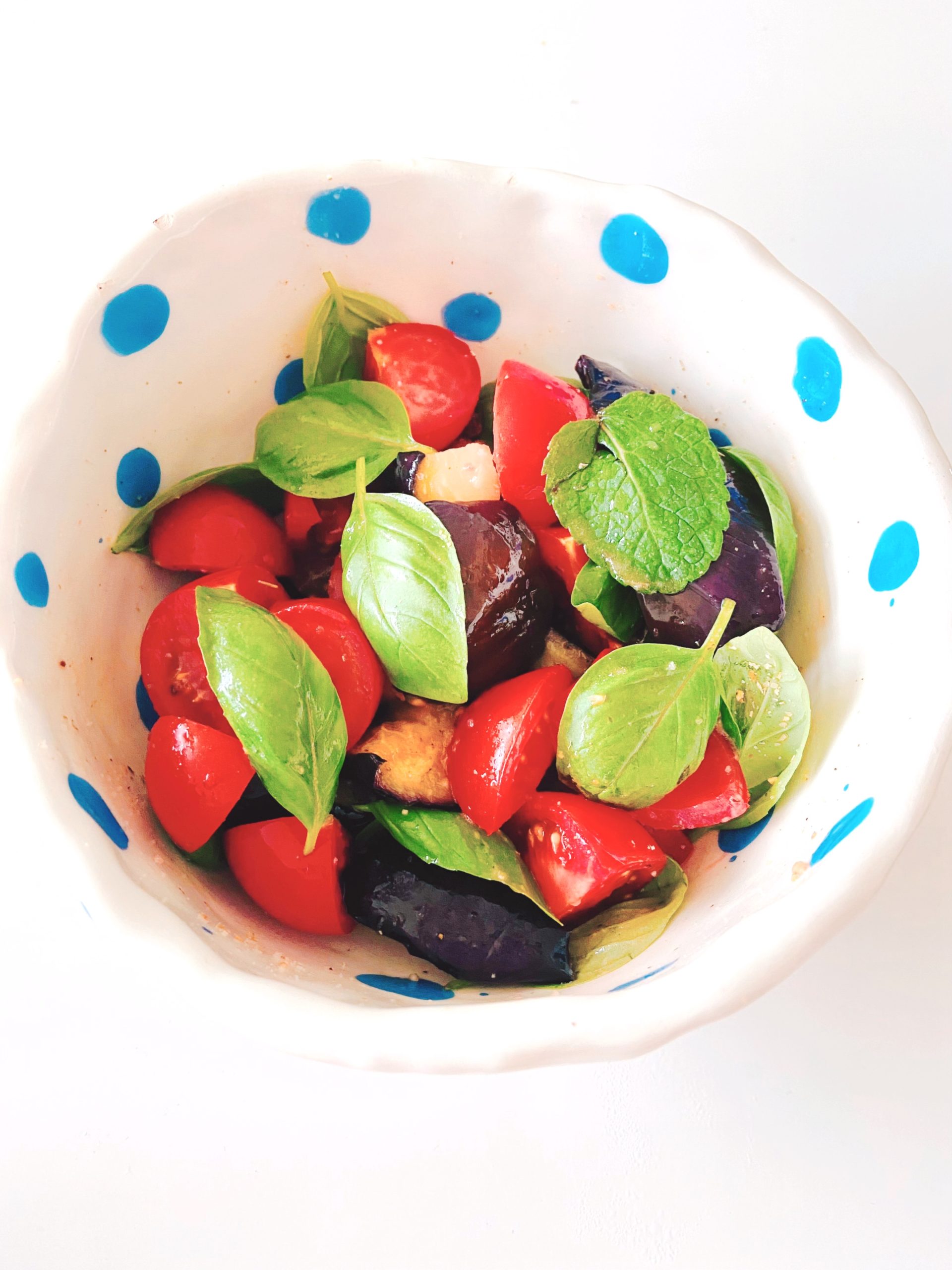 *炒めたナスは、粗熱をしっかり取ってから他の材料と混ぜ合わせてください